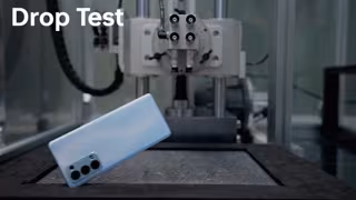 La prueba de caídas simula un escenario de caída libre desde varias alturas. En este caso concreto, se fijó a una altura de un metro, lo que supone un 25 por ciento más frente a las pruebas estándar de la industria, que es de 0,8 metros. Esta simulación se realizó entre 12 y 24 veces, haciendo caer el teléfono en sus 6 superficies, sus 8 esquinas y sus 12 bordes. Para simular escenarios aún más extremos, el teléfono se dejó caer de la misma manera, pero desde una altura de 1,5 metros.