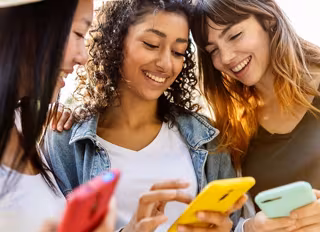 Tres mujeres usando el teléfono móvil - QUALCOMM