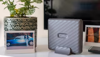 La impresora de Fujifilm incluye una correa para sostenerla a la muñeca y un soporte para colocarla en una superficie llana. Estará disponible a finales de este mes por 150 euros.
