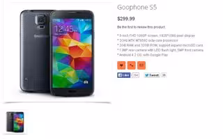 El Goophone S5 se vende por 299,99 dólares y se encuentra fuera de stock. El precio rumoreado del Galaxy S5 de Samsung se estima que rondará los 700 euros. Una diferencia abismal en terminales de similares características técnicas, aunque claro está que no ofrecen las mismas funcionalides.