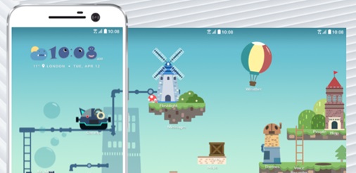 Siguiendo con la personalización, el HTC permite hacer un test de audio para ajustar el sonido a las necesidades de cada usuario y configurar el escritorio como hasta el momento no ha hecho ningún dispositivo móvil: con dibujos que hacen las veces de iconos-accesos directos. El usuario puede coger un fondo (que abarca tres pantallas del inicio) e incorporar un cohete (o un molino) y un astronauta (o un globo), que abran el correo y WhatsApp, respectivamente, por ejemplo.