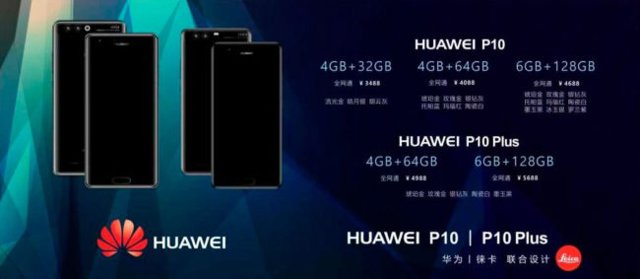 Hace tiempo que se dieron a conocer los precios estimados que tendrían los teléfonos de la compañía. Ahora, un documento filtrado, según muestra Phone Arena, deja ver los distintos modelos de los nuevos teléfonos de Huawei y sus precios. El documento muestra las distintas posibilidades: Un Huawei P10 con tres versiones diferentes y un Huawei P10 Plus con dos versiones diferentes, según RAM y ROM.