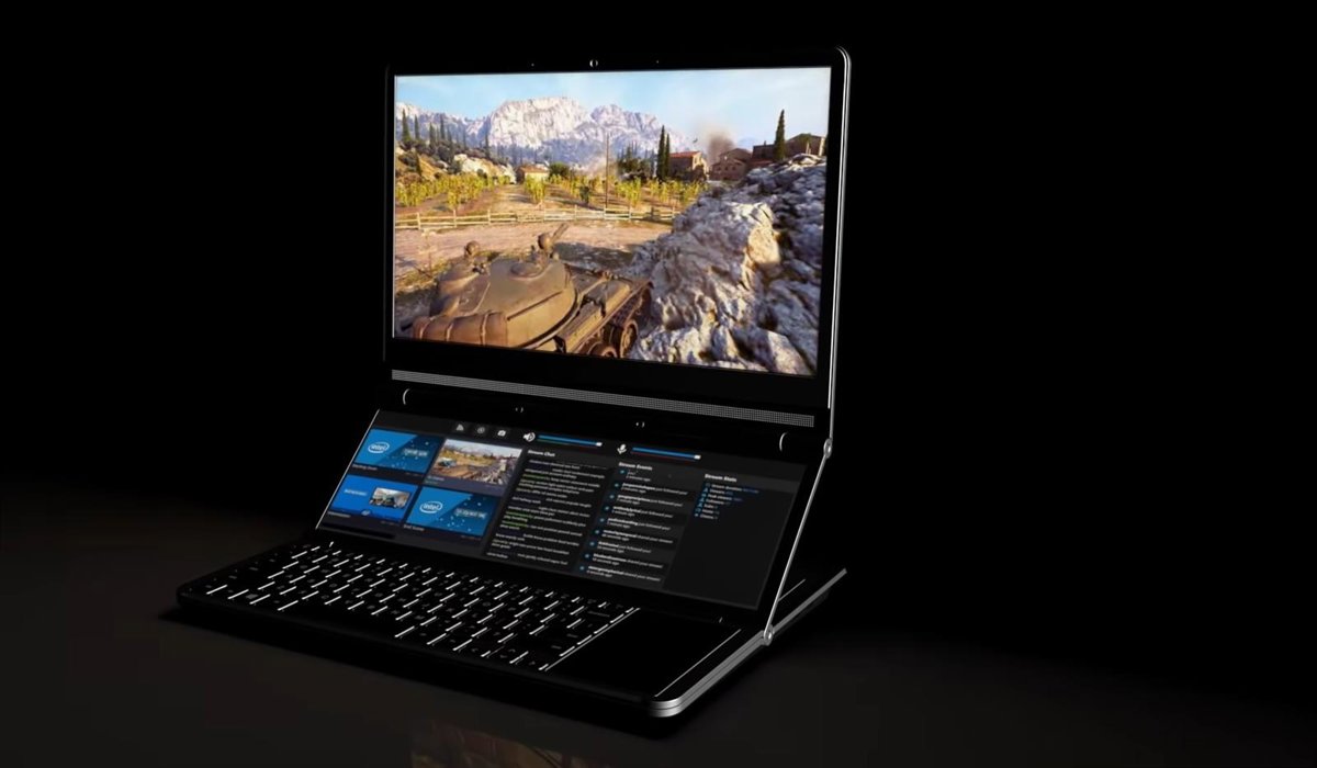 La segunda pantalla del concepto de forma de ordenador portátil de Intel se ubica por encima del teclado y bajo la pantalla principal, y se dirige especialmente a su uso por parte de creadores de contenidos y de jugadores de videojuegos, según explica Intel en un comunicado.