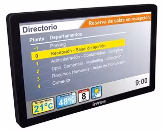 Se trata de un dispositivo de pared que combina "prestaciones de la cartelería digital, con un sistema de sensores que informan puntualmente al visitante acerca de la temperatura y la humedad del espacio en el que se encuentran ubicados", asegura la compañía.