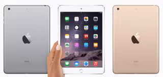 iPad mini 3, al igual que iPad Air 2, viene en tres acabados metálicos: oro, plata y gris espacial.