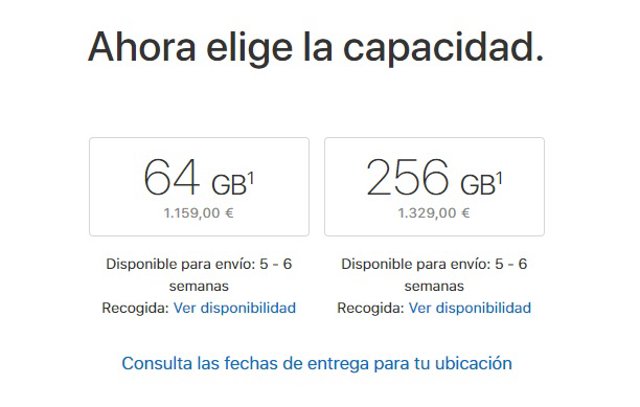 En España, tras el comienzo de las reservas a las 9:01, la tienda de Apple informaba tras unos pocos minutos de envíos que se recibirían en dos o tres semanas --a mediados de noviembre--, y en menos de una hora los envíos se programaban ya para cuatro o cinco semanas después, en torno a finales de noviembre, una espera que poco después se fijaba en cinco o seis semanas.