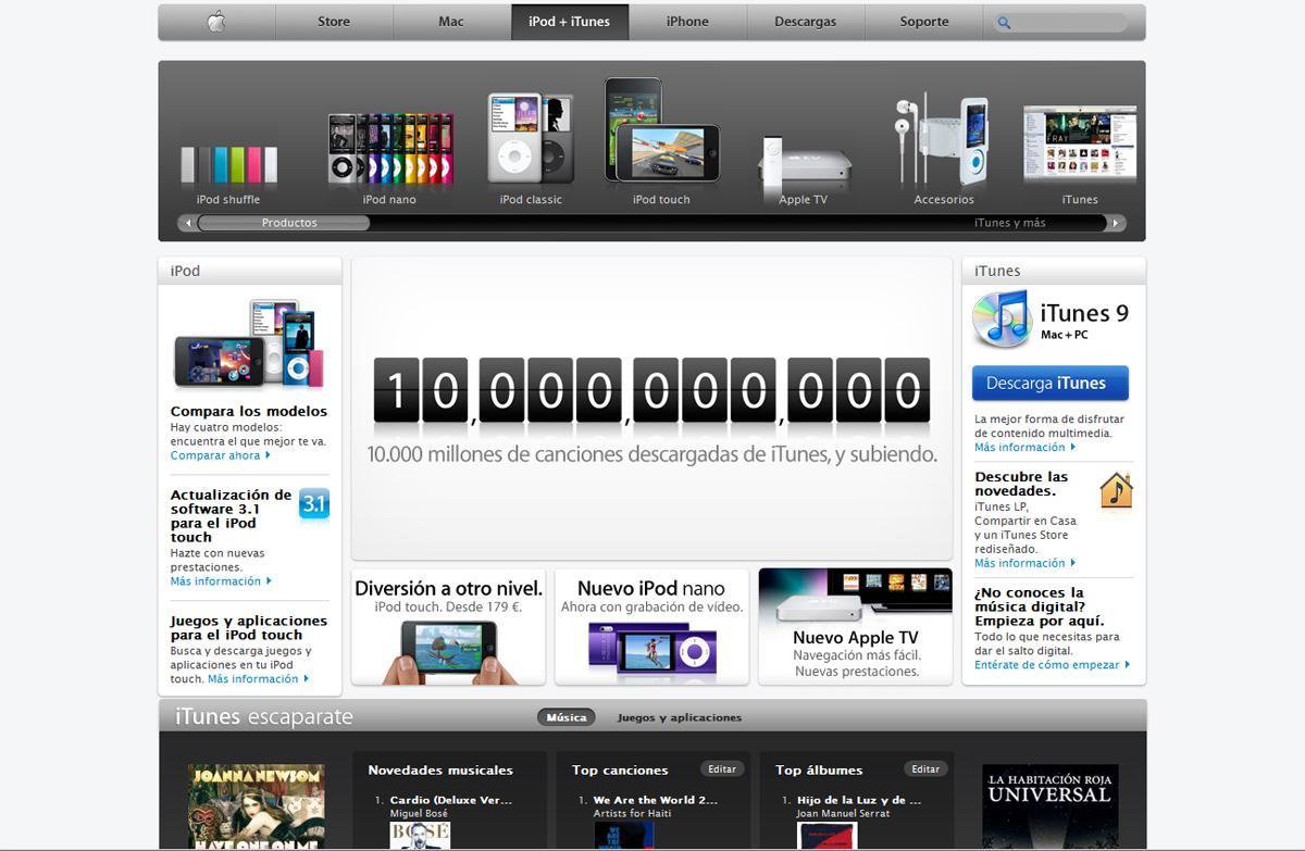 Apple ha superado una cifra simbólita y estratosférica en las descargas de canciones de su popular iTunes Store: 10.000.000.000. Este hito se puede comprobar en la página oficial de iPod/iTunes con un imponente marcador que muestra la cifra.