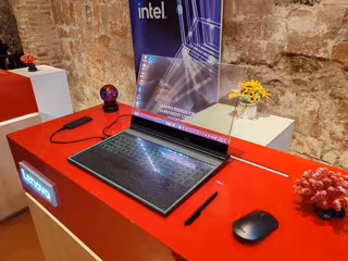 La novedad más destacada de esta presentación ha sido el ordenador con panel transparente ThinkBook Transparent Display Laptop Concept, que incorpora una pantalla transparente MicroLED de 17,3 pulgadas que alcanza un pico de brillo de 1.000 nits, lo que brinda una experiencia de visualización sin bordes.