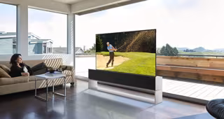 LG Signature OLED R es un televisor con una pantalla OLED de 65 pulgadas, alcanza una resolución de Ultra Alta Definición (UHD o 4K) y opciones de visualización diferentes, para verlo en pantalla grande (Full View) o que esta se desenrolle parcialmente (Line View).