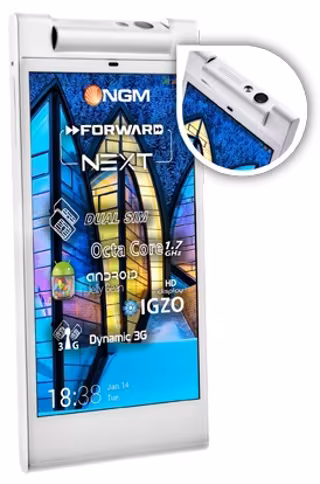 La compañía italiana NGM ha anunciado el lanzamiento en España de su nuevo 'smartphone' Android Forward Next, que incorpora un procesador de ocho núcleos y una cámara giratoria de 13 megapíxeles capaz de rotar 180 grados por lo que hace las veces cámara frontal y cámara trasera. Su precio recomendado libre es 340 euros.
