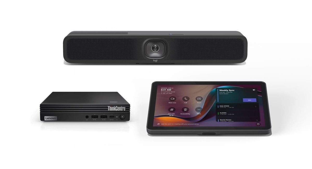 También incluye un mini PC Lenovo con procesador Intel i3 y el controlador táctil Logitech Tap con USB Kit, una pantalla de 10,1 pulgadas que ayuda a gestionar la sala y compartir contenido.