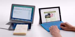 En esta nueva batalla dentro de la ya conocida guerra entre las dos compañías, Microsoft se ha enfrentado a Apple en tres anuncios distintos colgados en el perfil de YouTube de Surface en los que podemos ver cómo la tecnología de la Surface Pro 3 deja por los suelos a la del portátil de Apple.