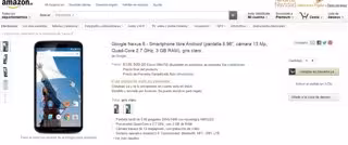 Concretamente, el terminal cuesta 599 euros en Amazon y en la tienda de Google cuesta 649 euros. Además, la web de Jeff Bezos ha desvelado que el Nexus 6 llegará a Europa -o al menos a Reino Unido- para el 15 de diciembre, según se puede leer en la versión inglesa de Amazon.