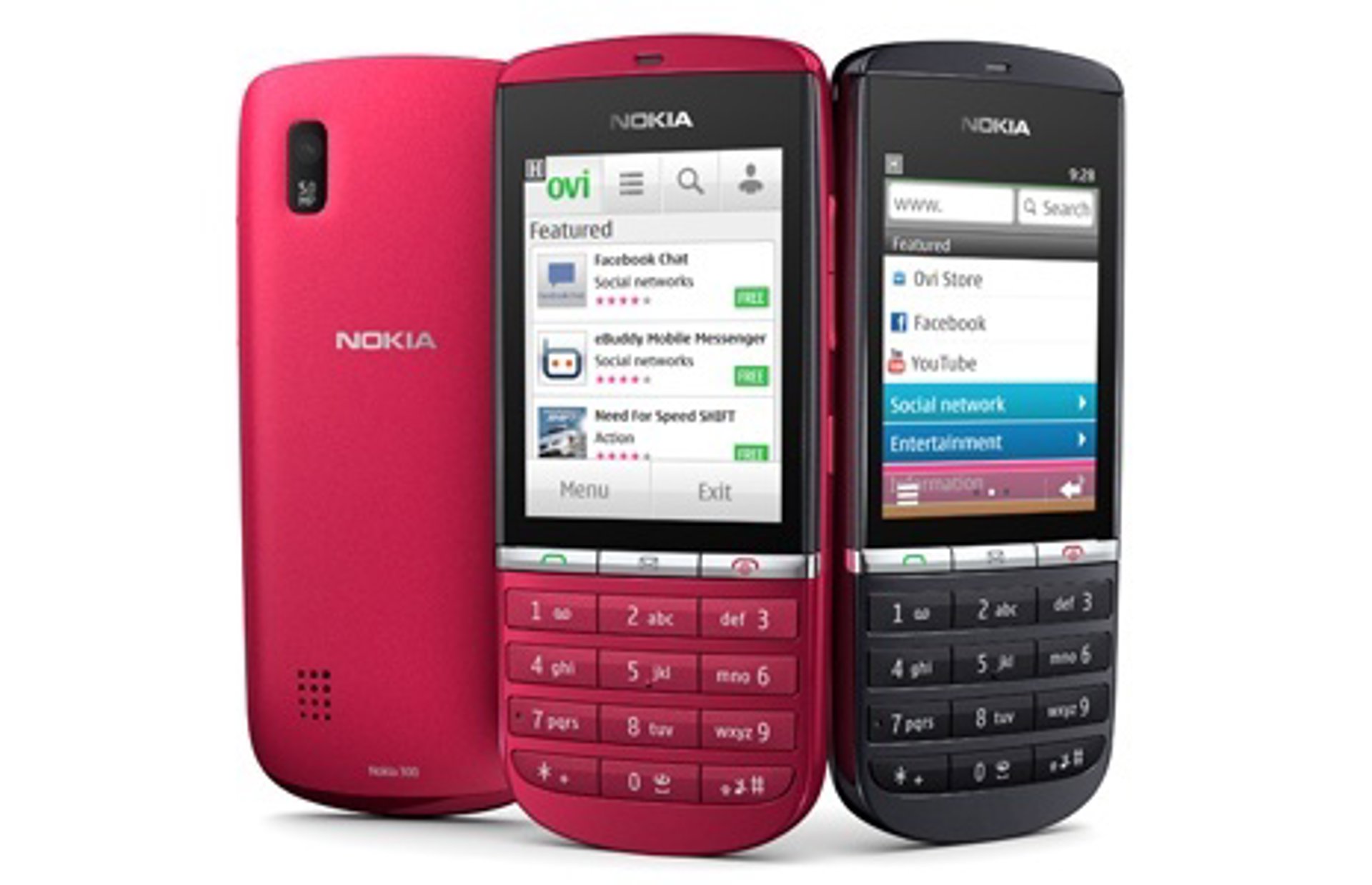 El terminal con prestaciones más altas es el Nokia Asha 303. Se trata de un 'smartphone que combina una pantalla táctil capacitiva de 2,6 pulgadas con un teclado Qwerty completo. Según Nokia, el "Asha 303 ha sido creado pensando en el acceso a Internet y a las redes sociales".