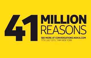 Nokia asegura tener "41 millones de razones" para seguir su evento del próximo 11 de julio en Nueva York. De esta forma, la compañía finlandesa deja entrever que las cámaras, la fotografía y el vídeo serán los protagonistas de su próximo evento. Todavía queda descubrir de qué tipo de dispositivo se trata, aunque puede estar muy en la línea de su Nokia 808 Pure View.