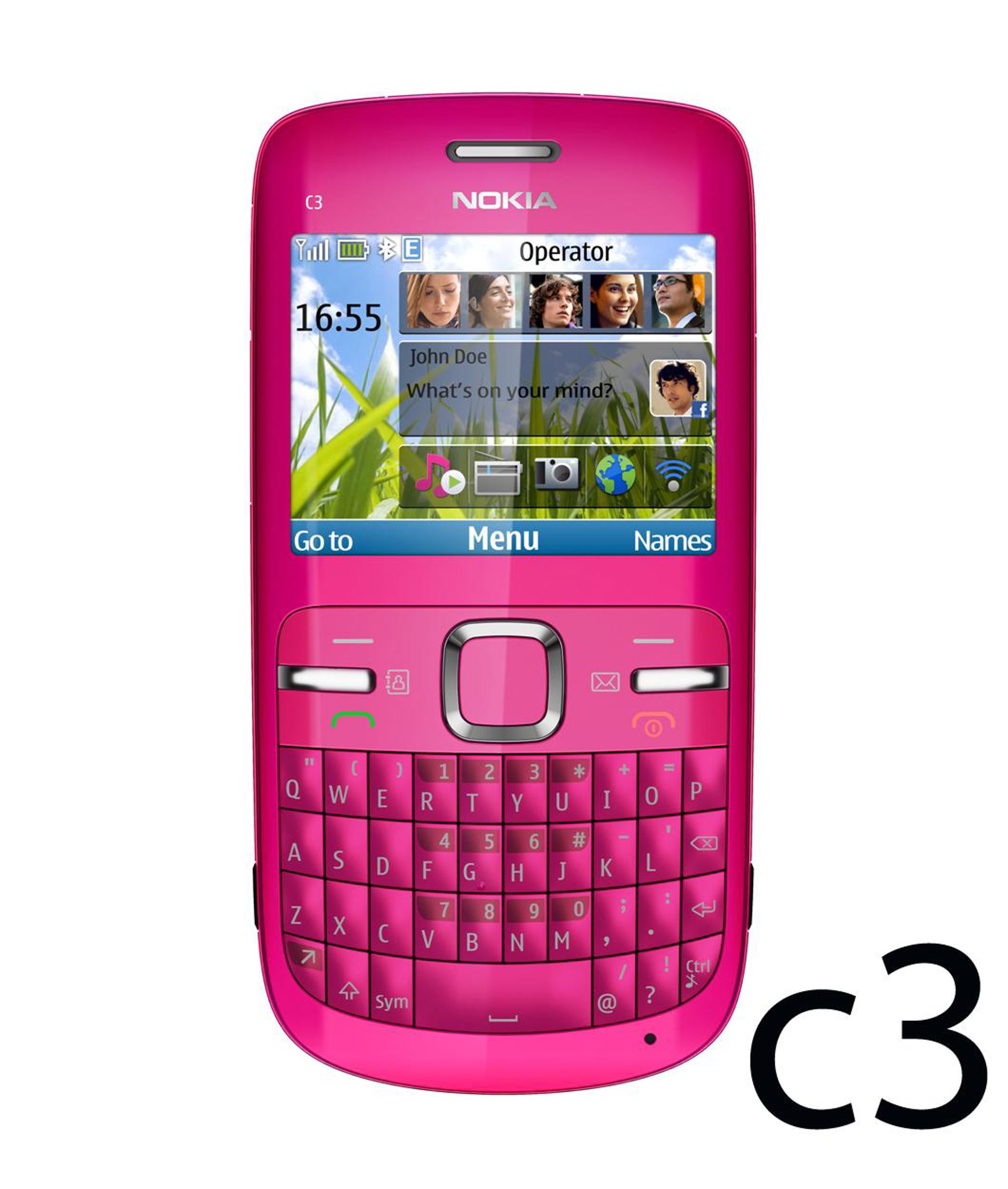 El Nokia C3 es el primer móvil que incorpora un teclado QWERTY completo dentro de la serie 40 y el primero de la gama en permitir el acceso a las redes sociales directamente desde la pantalla de inicio. Cuenta con conexión Wi-Fi, viene con Ovi Mail y Ovi Chat.