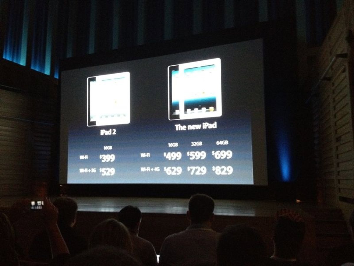 En cuanto a la versión 4G del nuevo iPad, Apple ha confirmado que el modelo de 16 GB costará 629 dólares, el de 32 GB 729 dólares y el de 64 GB tendrá un precio de 829 dólares.