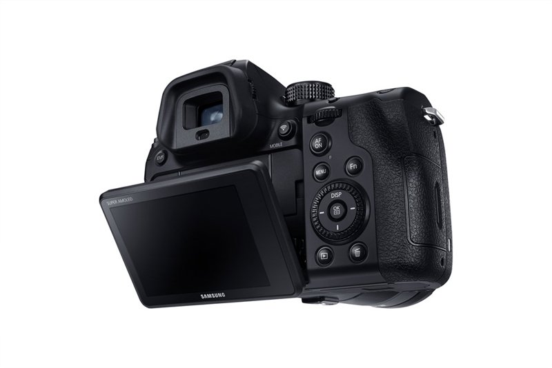 El visor electrónico (EVF) es una pantalla OLED XGA formada por 2,36 millones de puntos. Para reforzar el visor, el procesador DRIM reduce el tiempo a 0.0005 segundos de modo que el EVF refleja la escena que se disparó casi en tiempo real, sin demora. La pantalla de la cámara es una Super AMOLED FVGA de 3.0 pulgadas con capacidades táctiles.