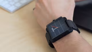 Este reloj diseñado por la compañía Uvolt es un reloj analógico que da la hora. Presenta un diseño minimalista y colores oscuros, para que cualquier pueda llevarlo a diario.