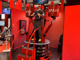 Simulador de la empresa española VR Black en el pabellón de España del MWC. - EUROPA PRESS.