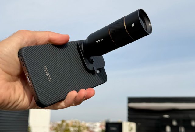 Para obtener la máxima calidad, OPPO también ofrece el teleconvertidor Hasselblad, que hay que acoplar al móvil con una funda especial y que se vende por separado. Este accesorio óptico de calidad profesional, diseñado exclusivamente para el OPPO Find X9 Pro, transforma el teléfono en una potente herramienta con zoom óptico de 10 aumentos, que permite un zoom digital de hasta 200 aumentos para fotos y 50 aumentos para vídeo.