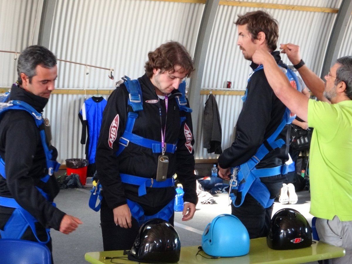 Los 3 participantes que llegaron a la final realizaron un salto tándem en paracaídas para defender su idea durante el intervalo de caída libre.