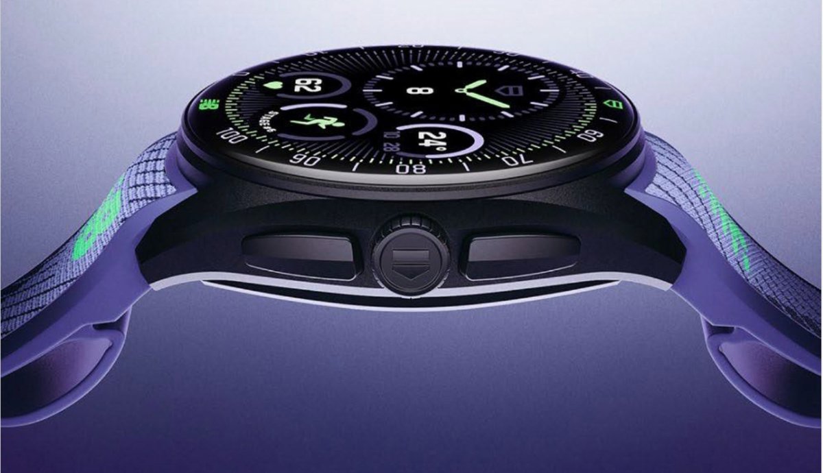 La esfera, fabricada con cristal de zafiro abombado con marcas moradas y verdes, presenta una nueva escala de 0 a 100 que se sincroniza con las métricas de entrenamiento de la aplicación, y ofrece a los corredores información clara e inmediata sobre su esfuerzo.
