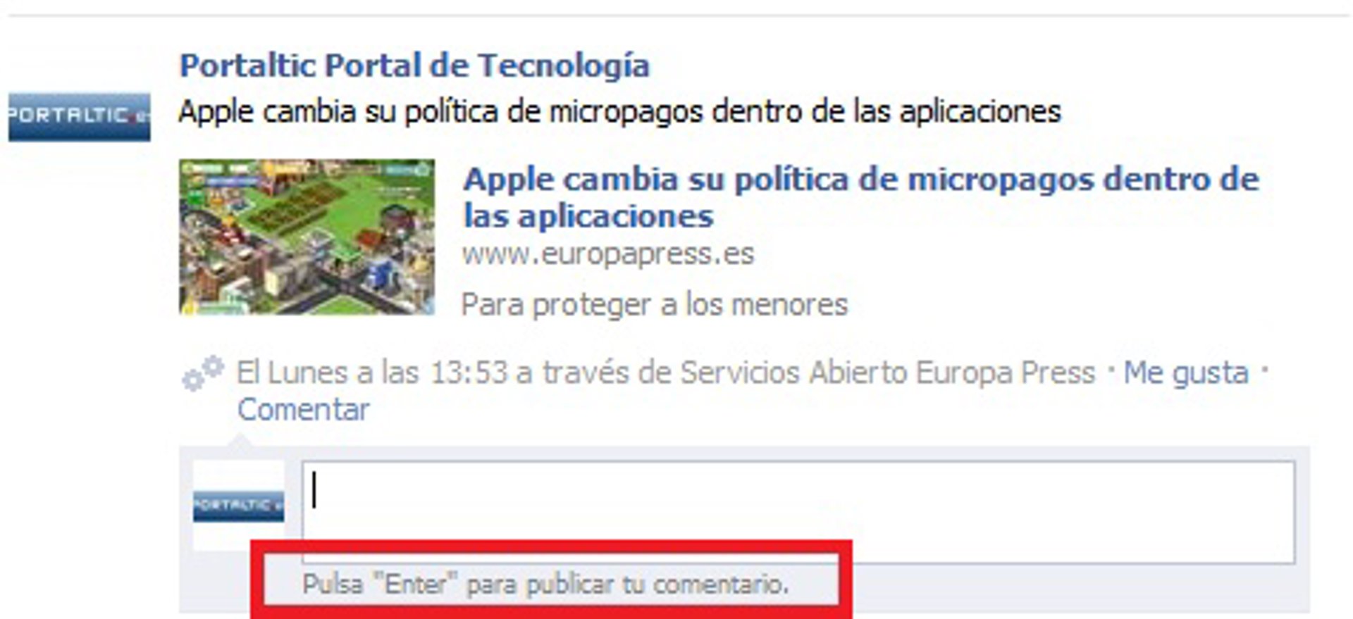 Ahora, los internautas no deben retirar sus manos del teclado para llevar una al ratón y hacer 'click' sobre el botón de 'Comentar' para agregar un comentario. Éste se introduce con tan solo pulsar 'Enter'.