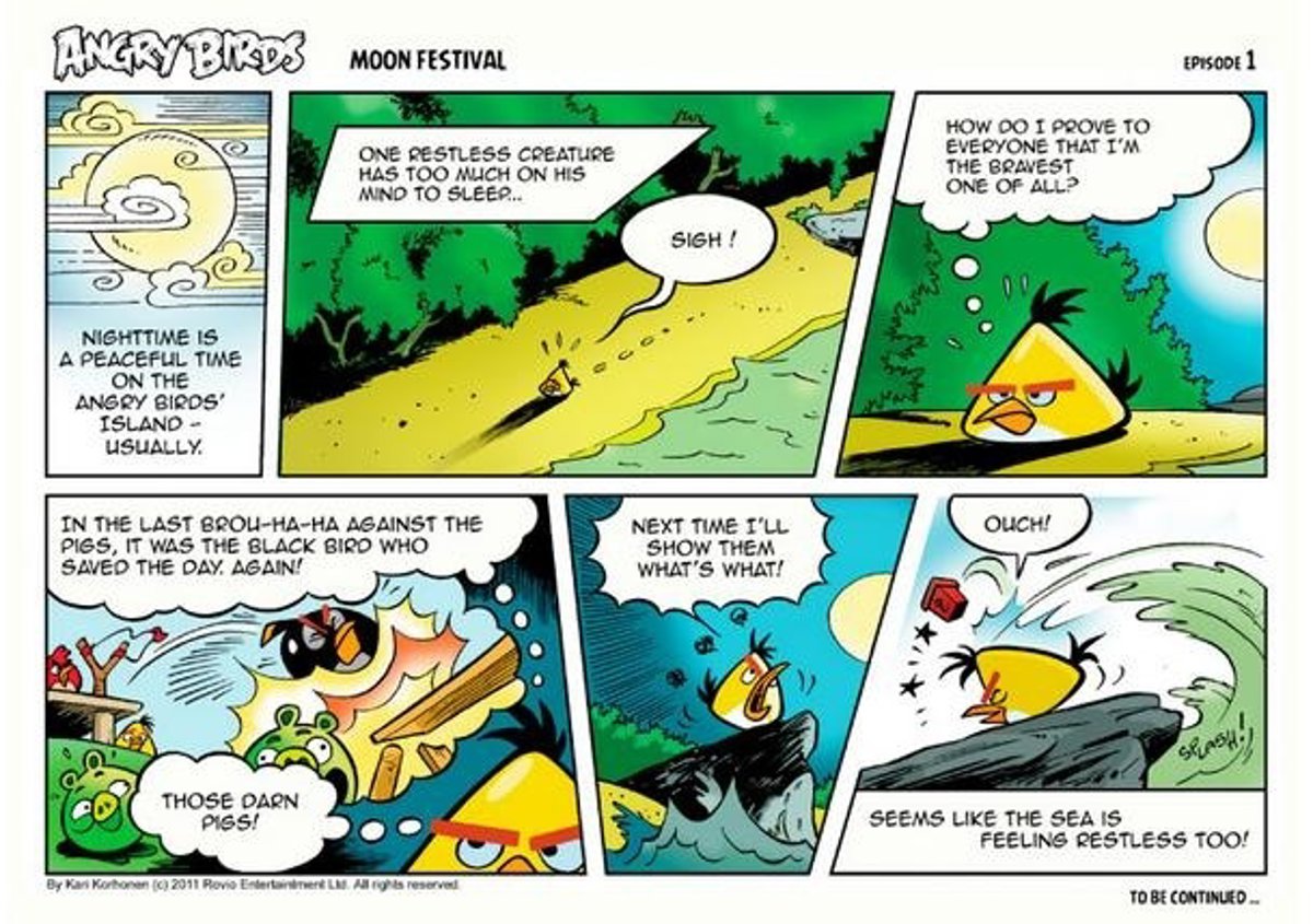 Los 'Angry Birds' se pasan al cómic para celebrar la Festividad de la Luna de China. Rovio ha anunciado el lanzamiento de un cómic gratuito con sus pájaros enfadados como protagonistas. La compañía irá publicando un nueva entrega cada día durante las próximas dos semanas. Los usuarios pueden consultar de forma gratuita cada día las novedades en la tienda de 'Angry Birds'.