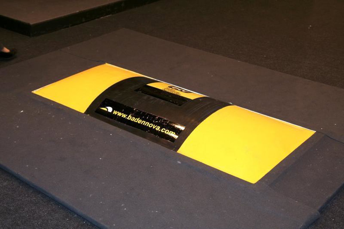 El novedoso badén consta de una banda reductora de velocidad que se caracteriza porque se endurece al detectar altas velocidades, actuando como un badén convencional, y se deforma y no opone ninguna resistencia a los vehículos que circulan a velocidades inferiores. El material empleado es el mismo que se usa en los chalecos salvavidas de los soldados o en las protecciones para los deportistas.
