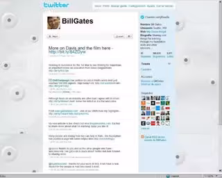 El tirón de Bill Gates es innegable, pero no puede decirse lo mismo al revés, de momento el empresario sólo es seguidor de 42 cuentas, entre ellas la de la reina Rania de Jordania y la actriz Azhley Tisdale - aparte de varios medios de comunicación y de la cuenta de la Casa Blanca y de Barack Obama -, y no tiene ningún favorito.