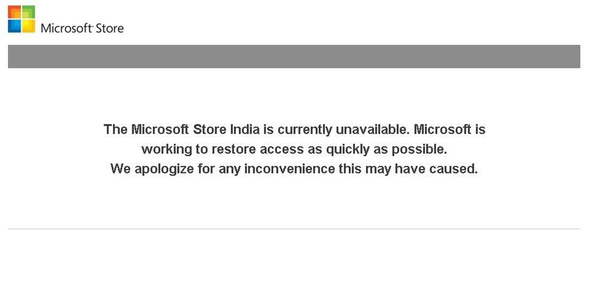 La página web de la tienda online de Microsoft para la India (www.microsoftstore.co.in) muestra todavía a las 18.00 horas un mensaje de error en el que se promete que se intentará restaurar el acceso lo antes posible.