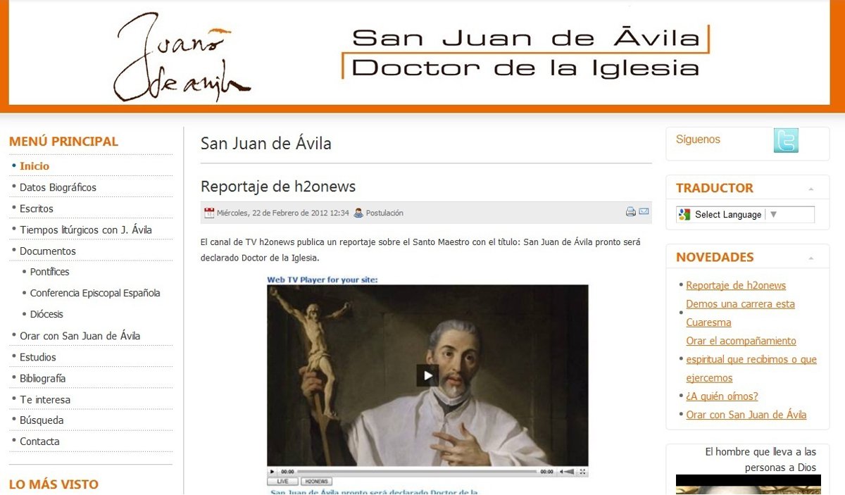 La Conferencia Episcopal Española (CEE) ha creado una página web ('www.sanjuandeavila.conferenciaepiscopal.es') y una cuenta de Twitter sobre el español San Juan de Ávila que próximamente será nombrado Doctor de la Iglesia, tal y como anunció el Papa durante la Jornada Mundial de la Juventud (JMJ) de Madrid.