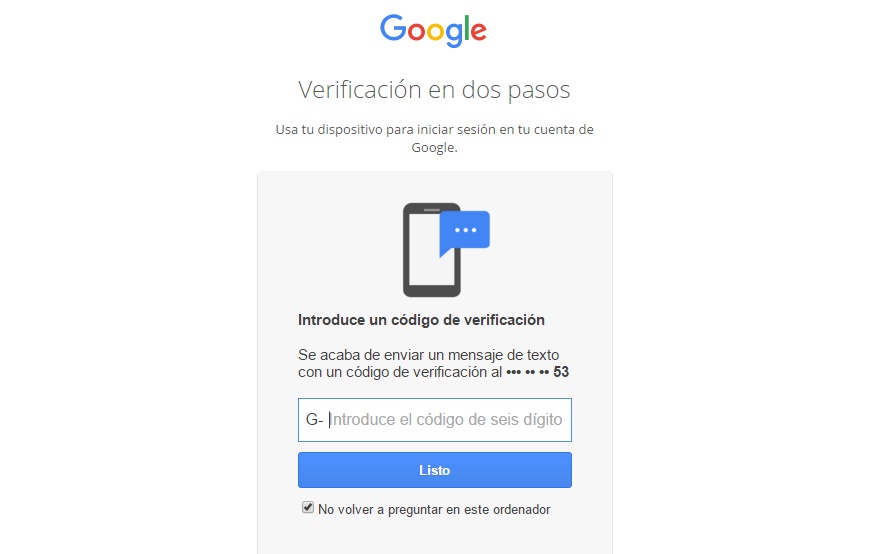 Recibirás ese código de verificación en tu teléfono a través de un mensaje, una llamada de voz o su aplicación para móviles. Cuentas, además, con la opción de no utilizar la verificación en dos pasos en un dispositivo en concreto, de modo que solo será obligatorio cuando se intente iniciar sesión desde uno no habitual.