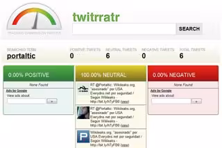 Dos buenos sistemas para conocer qué tipo de opinión están generando en la red marcas, personajes públicos o eventos. Portaltic, por lo visto, es más neutral que Suiza con un 100% de los resultados en este sentido en Twitrratr.