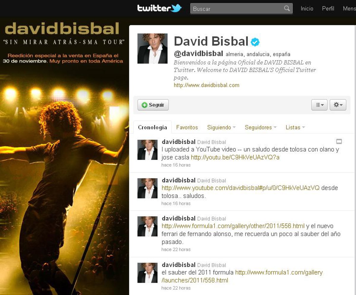 Aunque minutos más tarde el tweet del cantante fue borrado, #turismobisbal continúa siendo en España tema del momento en la red de microblogging.