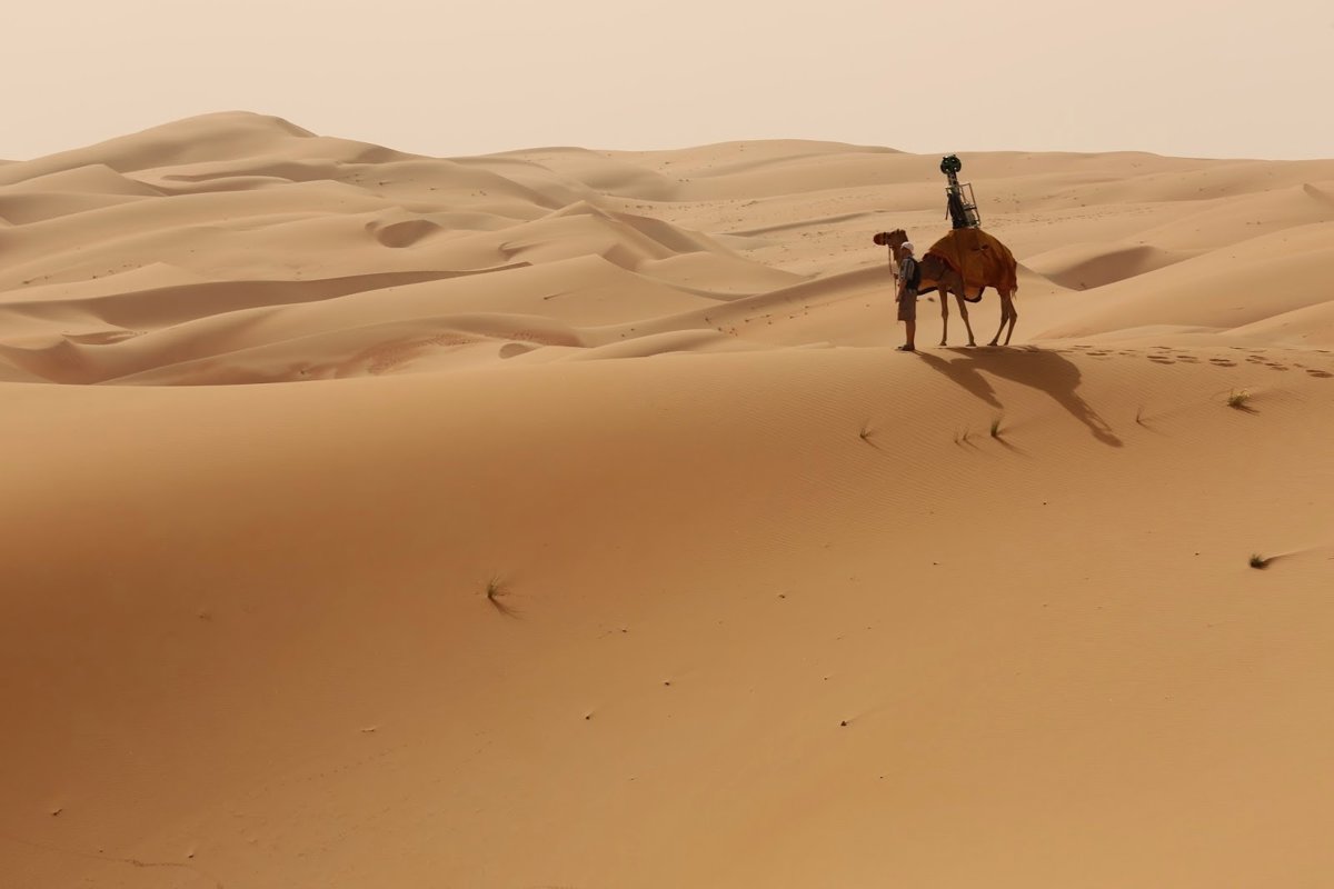Google ha utilizado cámaras Trekker montadas en camellos para llevar Street View a Liwa. El movimiento le da panorámicas de 360 grados, desde las dunas enormes (hasta 131 metros de altura).