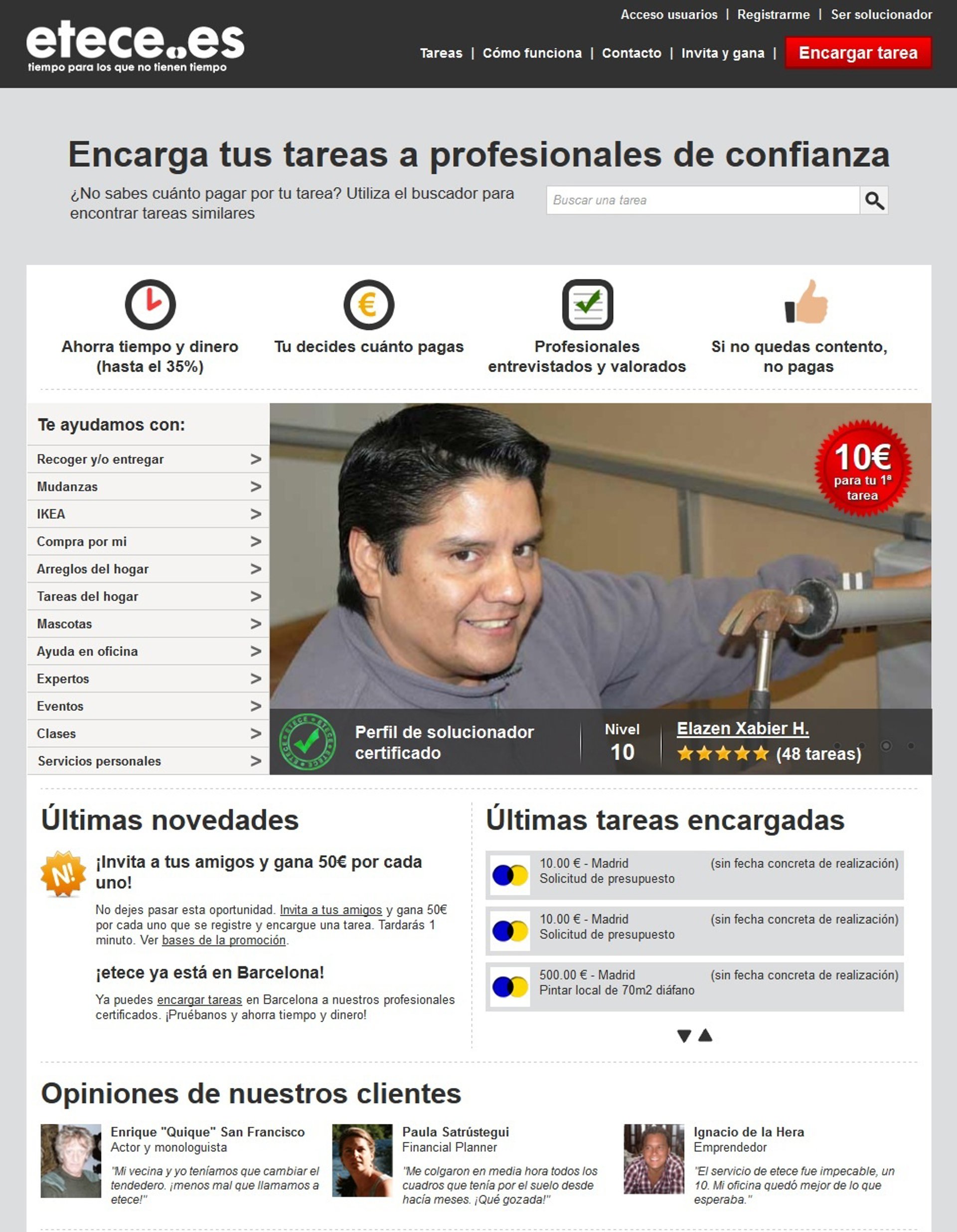 Etece.es ha lanzado en Barcelona su servicio de solución de problemas, tareas y encargos para gente sin tiempo, a través de una red de más de 100 profesionales autónomos entre los que puede elegir el propio usuario, ha informado en un comunicado.