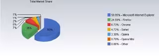 Si bien Internet Explorer (IE) lleva años perdiendo cuota de mercado, sus clientes perdidos siempre parecían ir a parar a Firefox, sin embargo, ahora la tendencia ha variado en favor de Chrome. Así, mientras IE tiene menos del 60% del mercado, Chrome aumentó hasta casi el 7%.