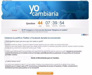 A través de la web www.movimientoparaelcambio.es, el PP pide a los usuarios la cesión de sus perfiles en estas dos redes sociales, y detalla: "Podrás seguir interactuando con tus amigos y/o seguidores de igual forma, pero al cedernos tu perfil, durante la convención, cuando Movimiento por el Cambio envié un mensaje, automáticamente se publicarán en tus perfiles de Facebook y/o Twitter cedidos".