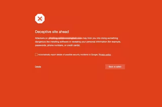 Cada vez que un usuario pulse en uno de los botones, Google Chrome, tanto en su versión para escritorios como para 'smartphones' y tabletas, mostrará una ventana amplia en pantalla de color rojo que anunciará que se trata de un lugar peligroso donde “los atacantes pueden hacer que hagas cosas peligrosas, como instalar determinados softwares o revelar información personal (como por ejemplo contraseñas, teléfonos móviles o datos de tarjetas bancarias)”. En dicho espacio habrá un botón bajo la descripción de “volver a la seguridad”, que el usuario puede pulsar para volver al punto anterior a pulsar el malware.
