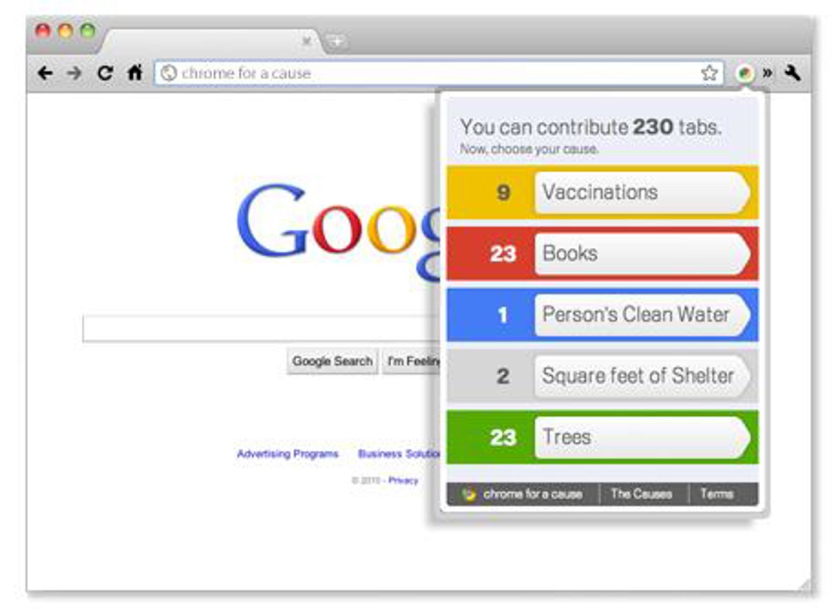 Google ha lanzado una campaña con la que a través de una extensión de su navegador Chrome y con cada pestaña abierta en él se donará dinero para obras de caridad.