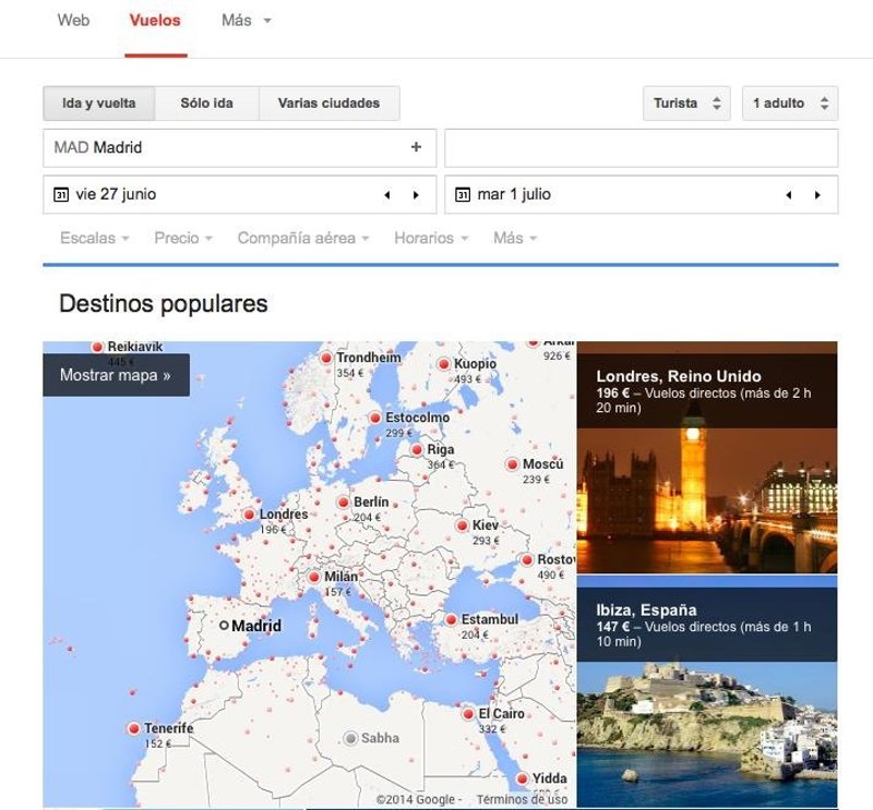 Tenemos, por lo tanto, la posibilidad de adecuar las opciones del viaje a nuestras posibilidades y gustos. Y sin salir de Flight Search podemos incluso reservar el vuelo con una compañía.