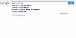 Si se busca en español la frase "quiero unirme a" la cuarta sugerencia también es la de "quiero unirme a isis"; la segunda es a "la yihad".