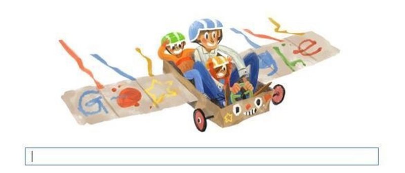 Google ha conmemorado el Día del Padre este miércoles 19 de marzo con motivo de San José en su 'doodle'. Para ello, el gigante de las búsquedas ha adornado su logotipo con un simpático dibujo de un padre y sus hijos montados en una avioneta de juguete en cuyas alas aparece pintado con "Google".