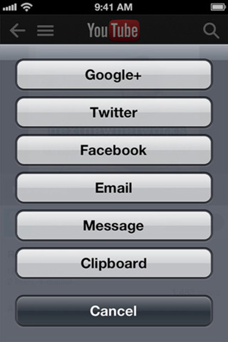 Desde la propia 'app' el usuario podrá compartir cualquier tipo de vídeo con sus amigos tanto desde Facebook como de Google+, e-mail o Twitter. De hecho, si lo prefiere, también está habilitada la opción de compartir por un mensaje de texto desde la aplicación de vídeo.