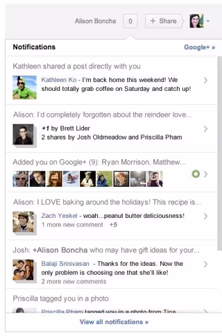 También pensando en dar mayor presencia a las novedades, Google ha aumentado el volumen de información que se muestra en el sistema notificaciones de Google. Se trata del indicativo rojo de la barra de Google, que avisa a los usuarios de las novedades en su cuenta de Google+.