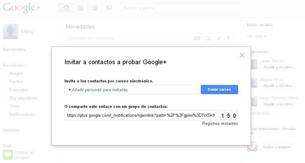 Google ha aumentado el número de amigos a los que el usuario puede invitar a su nueva red social. La compañía del buscador permite ahora desplegar hasta 150 invitaciones de su red social, con el objetivo de seguir masificando el uso de Google+.
