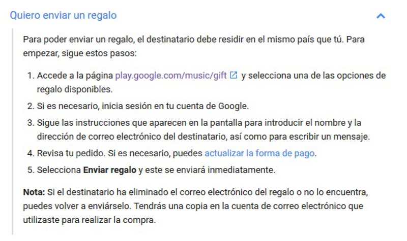 de Google, titulada “Regalar y prestar contenido digital”, y da la opción