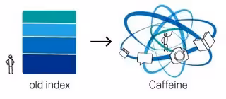 Caffeine permite indexar páginas web a gran escala. De hecho, cada segundo Caffeine procesa cientos de miles de páginas en paralelo. Esto equivaldría a una columna de papeles de aproximadamente cinco kilómetros de altura (apilado, indexado y vuelto a apilar cada segundo).